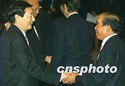 中新網(wǎng)香港11月19日電 國務院總理朱镕基今天下午在此間會見了香港主要商會領(lǐng)袖及工商金融界知名人士,與他們親切交談并合影留念。