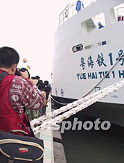 進入港池的巨輪向左緩緩轉(zhuǎn)向,忽然人群中發(fā)出一陣歡呼,碼頭上的鞭炮開始熱烈爆響——因為,在船的側(cè)身,巨大的中鐵標志終于展現(xiàn)在海南人民眼前。從此,坐著火車上北京不再是難以實現(xiàn)的夢想。