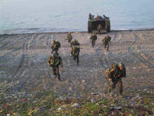 5日清晨,聯(lián)興88號操演地點,海象相當(dāng)良好,風(fēng)平浪靜,操演正式下達命令后,只見海軍兩棲登艦艇,在空軍戰(zhàn)斗機及陸軍攻擊直升機掩護下,載運包括戰(zhàn)車、捍馬車等車輛及海軍陸戰(zhàn)隊官兵弟兄們,發(fā)動5、6波搶灘登陸,與岸上反登陸部隊發(fā)生激戰(zhàn),在完成消滅岸上反登陸部隊及清除岸上地雷后,順利搶灘登陸成功。