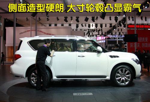 近年來(lái)SUV車型持續(xù)火爆,各廠商陸續(xù)推出新的車型以增加市場(chǎng)競(jìng)爭(zhēng)力。同時(shí)性能強(qiáng)悍,寬大舒適的大型SUV,也得到了一些具有獨(dú)特品位喜歡運(yùn)動(dòng)且資金富裕消費(fèi)者的最愛(ài),因此大型豪華SUV市場(chǎng)也受到了不少消費(fèi)者的關(guān)注。英菲尼迪是日系高端品牌中最具有藝術(shù)氣息的,今年在北京車展上就展出了全新一代的QX56,QX56作為一款7座豪華SUV車型,一經(jīng)推出就立刻受到了的中國(guó)消費(fèi)者的關(guān)注。近日我們從英菲尼迪4S店銷售人員處獲悉到,全新的英菲尼迪QX56將于今年9月份到店,預(yù)計(jì)售價(jià)160萬(wàn)元左右。銷售人員還表示,目前各4S店均已開始接受預(yù)定,訂金10萬(wàn),第一批車主將于10月份提到現(xiàn)車。下面就讓我們回顧一下,在2010北京車展上見到的英菲尼迪QX56。