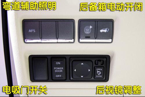 在方向盤左下方的控制區(qū)域內(nèi)包含了前大燈彎道輔助照明、后備箱電動開啟、電吸門開關(guān)(上車下車無需使勁拉動車門,在閉合時采用自動的吸入的方式)和后視鏡調(diào)節(jié)折疊功能。