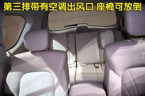 接下來我們就要說到第三排座椅了,也許這里的使用次數(shù)并不會很多,但是英菲尼迪同樣為第三排乘客提供了空調(diào)出風(fēng)口,大大提高了舒適度,如果有人故意將我擠到最后面的話,我想我還是可以接受的。如果當(dāng)你需要更大的空間作為儲物用途時,第三排座椅可以進(jìn)行4/6拆分放倒,這一點你要相信它的實力?傊绻阈枰恍﹤性,又想兼顧品質(zhì)與豪華舒適,這款英菲尼迪全新QX56應(yīng)該會很貼合你的想法。