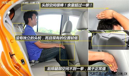 無論是前排還是后排,該車的頭部空間真是沒的挑了,全部超過一拳的余量完全可以容納身高超過1米8的乘客;然而,后排腿部方面則比較普通,不到一拳的空間屬于正常,所以說還是踏踏實實讓我來當(dāng)模特做個示范吧……