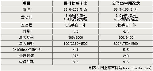 而在大排量引擎方面保時(shí)捷卡宴的V8引擎達(dá)到了4.8升的驚人排量,在雙渦輪增壓器的配合下引擎能夠低通368千瓦和700牛米的扭矩。而寶馬X5的V型8缸引擎同樣配備雙渦輪增壓器但排量?jī)H為4.4升,因此在動(dòng)力輸出上為300千瓦和600牛米。