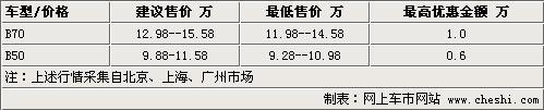 一汽轎車奔騰B70銷量的提升在很大一部分要?dú)w功于它與日系車型馬自達(dá)6相近的技術(shù)平臺(tái)。再加上自主品牌在價(jià)位上的優(yōu)勢,可以說奔騰B70似乎沒有太多“降價(jià)”的理由。但是大部分理性的消費(fèi)者更喜歡在它的指導(dǎo)價(jià)上“減去1萬元”之后再掏錢購買。因而在2010年的這個(gè)盛夏一汽轎車奔騰B70便推出了“官方降價(jià)1萬元”的活動(dòng),可謂是來了一個(gè)透心涼。