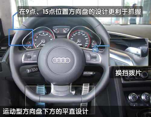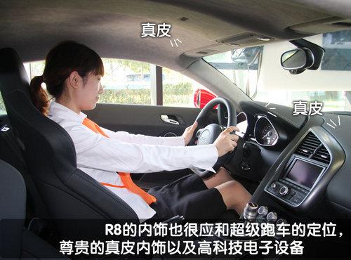 R8的內(nèi)部座艙體現(xiàn)了“以駕駛者為中心”的理念,中控臺部分略向左側(cè)傾斜,MMI操作系統(tǒng)、音響、空調(diào)及排檔、手剎等都以最合理的位置分配在駕駛者周圍。多功能帶換檔撥片的真皮方向盤底部扁平,更加映襯了R8作為一部超級跑車的風(fēng)格。根據(jù)車主的不同需求,奧迪R8將有多種內(nèi)飾風(fēng)格可以選擇。這與奧迪頂級豪華房車A8相同,您可以自由選擇內(nèi)飾的色彩、皮質(zhì)以及音響。因此在大致相同的外觀下,當(dāng)拉開車門后會立即發(fā)現(xiàn)一個只屬于車主本人的R8。