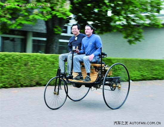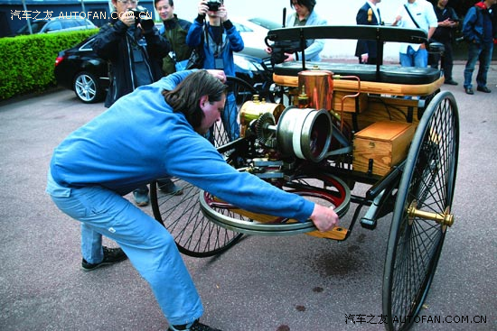 試乘完畢,漏的油似乎比用掉的多。這輛復(fù)制車(chē)還算精細(xì),不知道120年前的奔馳1號(hào)是不是也這樣遺灑?盡管如此,“不用馬拉的車(chē)”也值得我們肅然起敬了