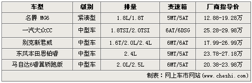 在國內(nèi)汽車市場中,最先開創(chuàng)轎跑車概念是馬自達6轎跑版,它的引進過程讓國人第一次感受到了4門轎跑車的獨特魅力,同時也得到了很好的市場反應(yīng)。在之后的一段時間中,合資汽車廠商紛紛推出類似車型,例如別克換代新君威、東風(fēng)本田思鉑銳、以及剛剛上市的大眾CC。除此以外,自主企業(yè)上海汽車名爵品牌也推出了MG6車型,雖然定位為緊湊級別車型,但4門掀背的設(shè)計讓、2705mm的長軸距它也理所當然的被列入了轎跑車的行列。