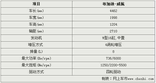 布加迪威龍(VEYRON)這個(gè)名字源自曾經(jīng)駕駛布加迪57贏(yíng)得1939利曼桂冠的Pierre Veyron。而16.4代表16個(gè)氣缸和4個(gè)渦輪增壓器。 這款車(chē)配備了大眾專(zhuān)門(mén)研發(fā)的W型16缸發(fā)動(dòng)機(jī),可以說(shuō)是將兩臺(tái)V8發(fā)動(dòng)機(jī)公用一根曲軸的產(chǎn)物。此外,該發(fā)動(dòng)機(jī)還配備了4個(gè)渦輪增壓器。排量達(dá)到了7993cc?梢员虐l(fā)出736千瓦的最大功率,同時(shí)在極低的1000rpm時(shí)即可輸出730牛米的龐大扭矩,在2200rpm時(shí)就可以迸發(fā)出1250牛米的峰值扭矩,這種扭力會(huì)一直持續(xù)到5500rpm。
