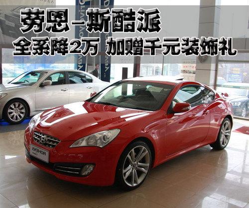 據(jù)北京進(jìn)口現(xiàn)代4S店銷售人員介紹,目前購(gòu)買勞恩斯酷派全系最高優(yōu)惠現(xiàn)金2萬(wàn)元,入門(mén)級(jí)車型優(yōu)惠后最低售價(jià)為17.9萬(wàn)元。靚雅版升級(jí)真皮版就是在原來(lái)的靚雅版的基礎(chǔ)上加裝更加舒適耐用的真皮座椅,市場(chǎng)指導(dǎo)價(jià)比原來(lái)貴4000元。現(xiàn)車方面,店內(nèi)有2.0T AT豪華版和靚雅版升級(jí)真皮版有部分現(xiàn)車供應(yīng),現(xiàn)車顏色以蘭、紅、銀色為主。2.0T AT靚雅版、2.0T MT酷動(dòng)版和3.7L車型需要預(yù)訂,訂金1萬(wàn)元等待1-2個(gè)月可以提到新車。如消費(fèi)者到店購(gòu)買,在優(yōu)惠的基礎(chǔ)上加贈(zèng)千元裝飾禮包。北京地區(qū)各4S店由于訂單不同,各店銷售的現(xiàn)車顏色有所不同。