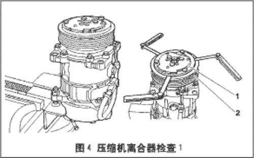 當(dāng)車(chē)外溫度傳改期顯示溫度低于設(shè)定值時(shí),ECU使壓縮機(jī)離合器不起作用;同樣,當(dāng)傳感器顯示節(jié)氣門(mén)全開(kāi)或發(fā)動(dòng)機(jī)處于高速運(yùn)轉(zhuǎn)時(shí),ECU使壓縮機(jī)離合器不起作用。