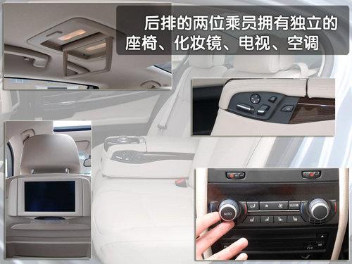 堪比頭等艙環(huán)境的后排空間可以乘坐兩名乘客,他們分別都有自己的獨(dú)立座椅?梢赃M(jìn)行多向調(diào)節(jié)(甚至是調(diào)節(jié)成一個大沙發(fā))。同時腰部支撐、2組位置記憶也都是BMW對于后排乘客的周到考慮。BMW新7系轎車擁有人性化的4區(qū)域空調(diào),車內(nèi)每一位乘員都能夠擁有自己最合適的溫度環(huán)境。此外后排空間人性化配置還包括電動的遮陽簾和帶照明的化妝鏡。此外新7系轎車除740豪華型外,其它配置車型都帶有后排手持電話機(jī),可以直接插入SIM卡進(jìn)行電話撥打,同時也為駕駛者提供了藍(lán)牙免提電話準(zhǔn)備功能(740li豪華型有此配置)。