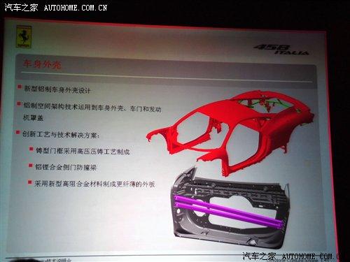 法拉利458 Italia采用了新型鋁制空間架構(gòu)模塊化底盤設(shè)計(jì),不僅大大降低了設(shè)計(jì)和制造的成本,而且在維修為更換部件方面更是有著很大優(yōu)勢,各個部件可以單獨(dú)進(jìn)行更換配件,458 Italia在局部還使用了航空鋁制材料,鋁制結(jié)構(gòu)在重量和強(qiáng)度方面有相比于鋼制結(jié)構(gòu)車型要出色。