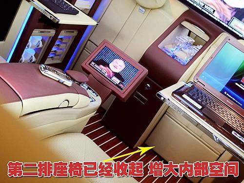 博速改裝廠將其駕駛艙與后排座椅隔開,而其隔板則放置了較大的32英寸LCD顯示屏,其不僅可以將與筆記本電腦連接起來,同時(shí)還可以用來顯示車輛周圍的路況。
