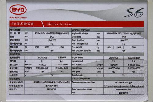 比亞迪S6官方參數(shù)表