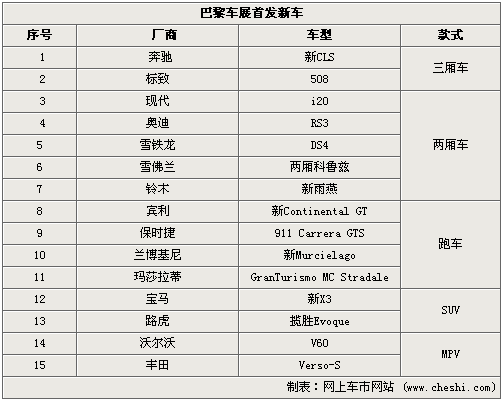 2010巴黎車展將于9月底正式開幕,本屆車展新車云集,數(shù)十款新車將在車展全球首發(fā),包括奔馳、寶馬、標致等歐洲本土廠商,也有雪佛蘭、豐田等海外廠商。而這次在開幕前我們所盤點的是巴黎車展首發(fā)后將引入國內(nèi)銷售的新車,預(yù)計將有15款首發(fā)車后續(xù)引入。