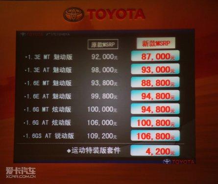 廣汽豐田新雅力士共推出了1.3E魅動(dòng)版手動(dòng)擋和自動(dòng)擋、1.6E魅動(dòng)版手動(dòng)擋和自動(dòng)擋、1.6G炫動(dòng)版手動(dòng)擋和自動(dòng)擋、1.6GS銳動(dòng)版自動(dòng)擋等共7款車型。