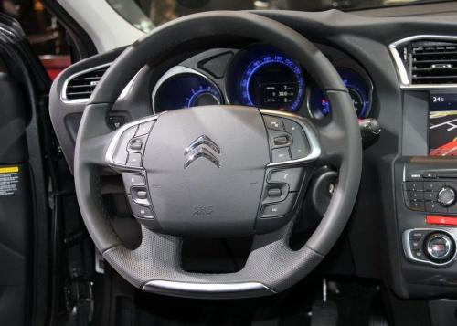 2011款雪鐵龍C4的內(nèi)飾相比現(xiàn)款車型變動較大,儀表盤不再特立獨行地擺放在中控臺的上方,而是“回歸”到了方向盤的后方,并且也從“三合一”式的顯示方式改為了傳統(tǒng)的獨立顯示。儀表盤依舊采用了電子顯示技術,加上黑色與淡藍色交叉輝映的燈光效果,科技味道更加濃厚。