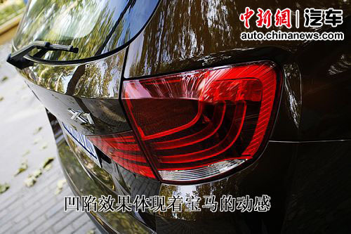尾燈的設(shè)計(jì)借鑒了寶馬其他新車(chē)型的特點(diǎn),尤為犀利的L形尾燈設(shè)計(jì),在夜晚使人立刻就能辨認(rèn)出這是輛寶馬車(chē)。導(dǎo)光條的引入讓車(chē)輛更具科技?xì)庀。寬大的后保險(xiǎn)杠的設(shè)計(jì)又很有越野的味道,鑲嵌在上面的反光條和下部護(hù)板是典型特征。后備箱的凹陷效果時(shí)刻體現(xiàn)著寶馬的運(yùn)動(dòng)精神。