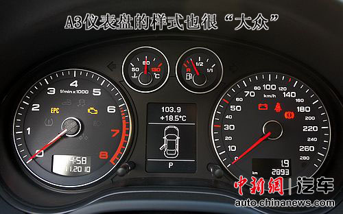 和奧迪大部分車型的一體式儀表和中控臺(tái)比起來,A3儀表盤的樣式也很“大眾”。雖然沒有MMI系統(tǒng),但行車電腦功能強(qiáng)大依舊。