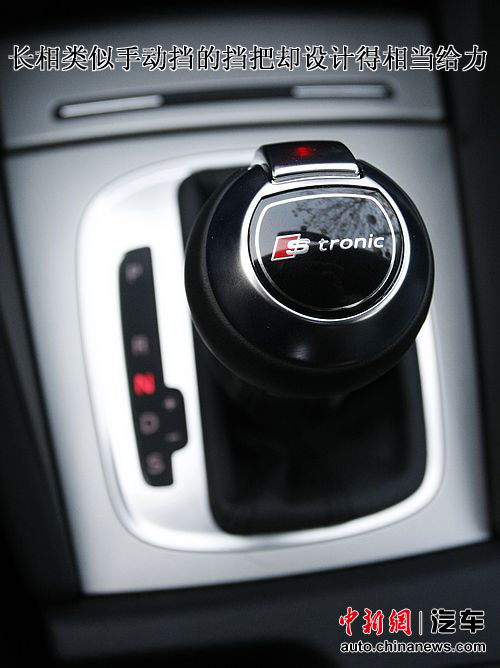 S tronic 7速雙離合變速器同樣是老面孔,但是這個(gè)長(zhǎng)相類(lèi)似手動(dòng)擋的擋把卻設(shè)計(jì)得相當(dāng)給力,手感和外觀都足夠出色。因?yàn)闄n位多,齒比綿密,所以日常駕駛的時(shí)候換擋相當(dāng)頻繁,走不出多遠(yuǎn)就發(fā)現(xiàn)已經(jīng)掛在7檔上了。在北京這樣擁堵的城市里走走停停,看著檔位頻繁跳來(lái)跳去,讓人不禁為變速箱的耐久度捏一把汗。拋開(kāi)這一點(diǎn),這款變速箱在平順性和經(jīng)濟(jì)性上基本無(wú)可挑剔。