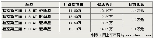 據(jù)4S店銷售人員介紹:目前?怂谷龓1.8升三款車型現(xiàn)車充足,尤其銀色、灰色、藍(lán)色、黑色車型現(xiàn)車較多,手動(dòng)擋車型目前優(yōu)惠1.4萬元,優(yōu)惠后僅售10.49萬元,1.8升自動(dòng)版車型優(yōu)惠1.2萬元。2.0升車型目前現(xiàn)車較少,顏色也不齊全,訂車需等待3周左右,目前優(yōu)惠1.1萬元。
