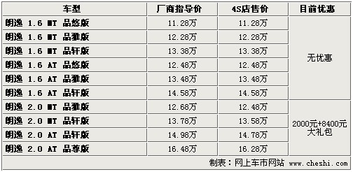 據(jù)4S店銷售人員介紹:目前朗逸全系無現(xiàn)車,全部需要預(yù)訂,訂車最少等待1周時(shí)間,最長需等1個(gè)月。目前朗逸1.6排量車型無任何優(yōu)惠,也不附贈裝飾;但購買2.0升排量車型有2000元的降價(jià),并附贈價(jià)值8400元的“大禮包”。“大禮包”包括導(dǎo)航、6碟CD、雷鵬車膜、地膠、腳墊、擋泥板、牌照架、迎賓踏板等,可以說您購買2.0升排量車型可以免去做更多的裝飾,綜上推薦購買2.0升排量車型。