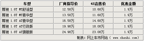 據(jù)4S店銷售人員介紹,目前08款的駿捷及尊馳兩款車型均在持續(xù)熱銷,貨源還是比較充足的,但是個別車型的顏色不是很全,需要預(yù)訂,店內(nèi)的主要顏色為黑色及銀色。相比新款尊馳車型的銷售情況,老款車型同樣受到關(guān)注,在新款車型開始銷售后,老款車型的優(yōu)惠幅度更高,所以在各家經(jīng)銷商處的老款車型均可給出最高1.9萬元的現(xiàn)金優(yōu)惠,另外駿捷的兩款車型也可在原廠家指導(dǎo)價的基礎(chǔ)上給出1.9萬的優(yōu)惠幅度。