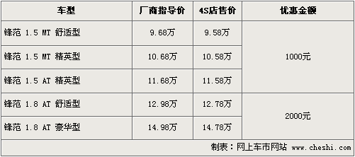 筆者了解,目前鋒范的優(yōu)惠幅度仍然保持最高2000元的優(yōu)惠幅度,其中1.5排量?jī)?yōu)惠現(xiàn)金1000元,精英版和舒適版均有不用顏色現(xiàn)車供應(yīng),部分款色還需要預(yù)訂,1.8排量最高優(yōu)惠現(xiàn)金2000元。消費(fèi)者到店還可以有一定幅度的讓利。部分經(jīng)銷商還有禮包增送。