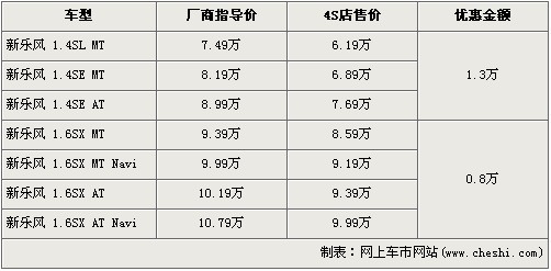 新樂風是雪佛蘭旗下的三廂入門級家用車銷售主力,但由于上市多年,消費者對于它也產生了審美疲勞。在今年的5月份,帶有家族新特征的小改款新樂風來到世人眼前,外觀的改進讓此車動感不少。近日據(jù)網上車市價格系統(tǒng)檢測顯示,新樂風出現(xiàn)了最高1.3萬元的優(yōu)惠,具體價格詳情請看下表: