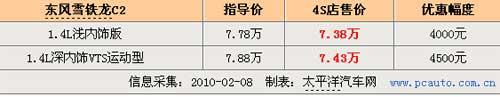 筆者近日走訪北京東風(fēng)雪鐵龍4S店時(shí)獲悉,目前店內(nèi)一批1.4L C2增配車(chē)型正進(jìn)行促銷(xiāo),除了增加(駕駛座椅高度可調(diào)、電動(dòng)后視鏡、電動(dòng)后窗)等配置外,現(xiàn)金優(yōu)惠方面也最高達(dá)到了4500元,算下來(lái)累積優(yōu)惠達(dá)到萬(wàn)元左右。據(jù)了解4S銷(xiāo)售人員表示他們更看好1.4升車(chē)型在北京市場(chǎng)的銷(xiāo)售,原因主要是C2作為一款以運(yùn)動(dòng)、時(shí)尚和外觀為特點(diǎn)的小車(chē)型,吸引的更多是年輕人的目光,而這批獨(dú)有顏色的車(chē)型也是為了迎合了此類(lèi)需求。