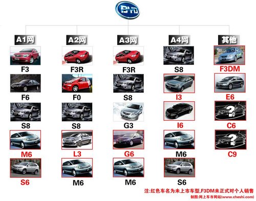 從上面的比亞迪詳細(xì)新車規(guī)劃中可以看出,比亞迪未來不僅有A1、A2、A3銷售網(wǎng)絡(luò),還將有A4網(wǎng)絡(luò),而新能源車放在哪個(gè)網(wǎng)絡(luò)暫時(shí)還不得而知。在四張網(wǎng)絡(luò)下,將推出M6、L3、I6、I3、E6、S6、G6、C6、C9等全新車型,而F3DM雖然已經(jīng)公布售價(jià),但還未對(duì)個(gè)人銷售,因此也算在比亞迪的規(guī)劃新車中。這其中M6、G6、S6預(yù)計(jì)將在明年上市,分別為MPV、B級(jí)轎車、SUV車型。