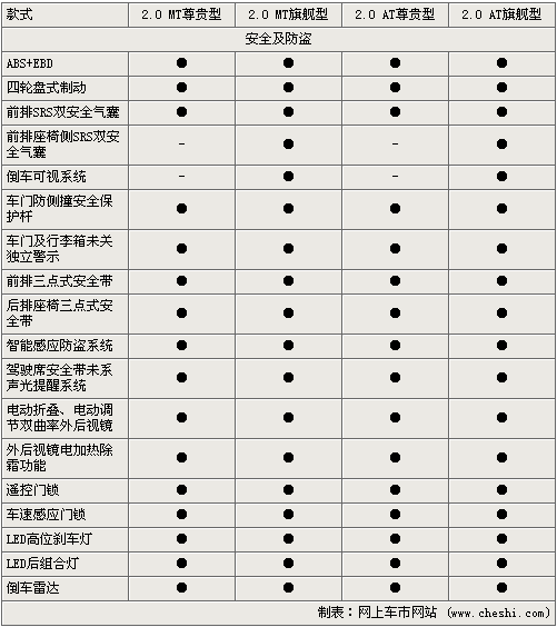 在安全配置上,尊貴型與旗艦型差別只是側(cè)氣囊與倒車可視系統(tǒng),其他安全配置則完全相同,可見(jiàn)S8在主被動(dòng)安全配置上還是相當(dāng)完備的,ABS+EBD、倒車?yán)走_(dá)、智能防盜、前排雙氣囊等都為標(biāo)準(zhǔn)配置。