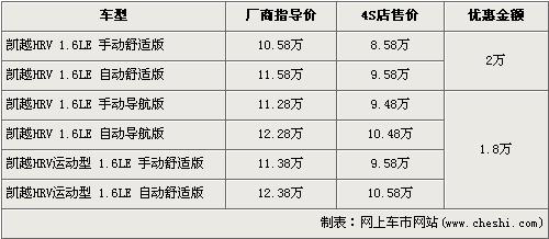 凱越HRV是04年10月上市銷(xiāo)售的,其憑借流暢的外形博得了不少消費(fèi)者的喜愛(ài)。07年10月份,上海通用別克又推出了增加前后包圍套件的運(yùn)動(dòng)版凱越HRV,流暢的外形在前后包圍的裝飾下彰顯運(yùn)動(dòng)。近日根據(jù)網(wǎng)上車(chē)市價(jià)格檢測(cè)系統(tǒng)顯示,別克凱越HRV全系最高優(yōu)惠2萬(wàn)元,具體詳情請(qǐng)看下表: