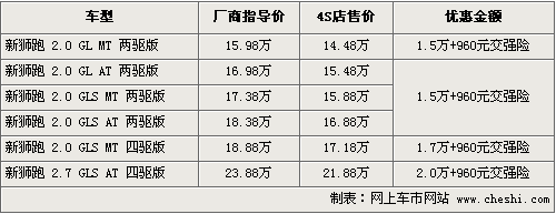 據(jù)4S店銷(xiāo)售人員介紹,目前購(gòu)買(mǎi)獅跑可以贈(zèng)送960元的交強(qiáng)險(xiǎn),同時(shí)有1.5萬(wàn)-2萬(wàn)元不等的現(xiàn)金優(yōu)惠。兩驅(qū)標(biāo)準(zhǔn)版優(yōu)惠后售價(jià)僅為14.48萬(wàn)元。目前經(jīng)銷(xiāo)商處有黑色、銀色等現(xiàn)車(chē)供應(yīng),藍(lán)色等款需要預(yù)定,訂金為2千元,月內(nèi)便可以順利提車(chē)。