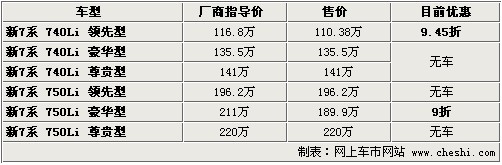 據(jù)4S店銷售人員介紹:目前新款7系現(xiàn)車較少,大部分需要預(yù)訂,預(yù)定時間基本在3-4個月時間,最長需等4個月以上。目前店內(nèi)只有740Li領(lǐng)先型及750Li豪華型少量現(xiàn)車,顏色有太空灰色。在優(yōu)惠政策方面,740Li系列可以打9.45折,750Li系列可以打9折,喜歡的朋友可以到店內(nèi)洽談,還可獲得更高的優(yōu)惠。