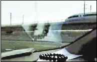 在整個行車過程中,高速公路上曾出現(xiàn)一些指示牌,但因車速太快,難以看清圖像。