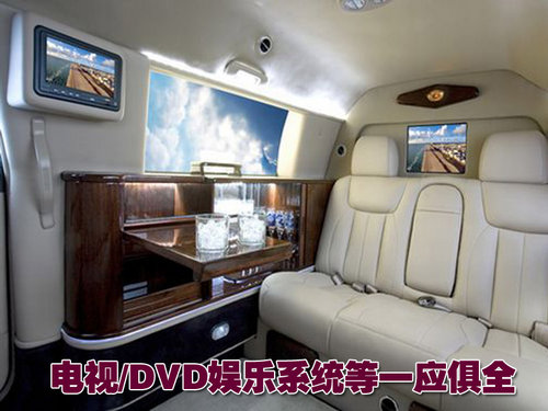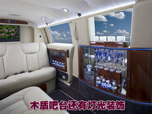 上等的真皮裝潢、電視以及DVD娛樂系統(tǒng)、小型酒吧臺(tái)均是該車的必要配置,此外其還擁有WiFi 無線網(wǎng)絡(luò)系統(tǒng)。12伏的電源插口,不銹鋼點(diǎn)綴裝飾的木質(zhì)裝飾吧臺(tái)還有燈光作為點(diǎn)綴。