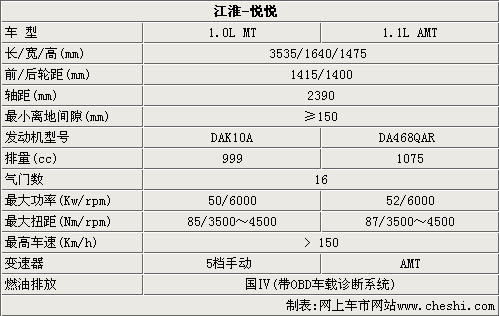 江淮悅悅將搭載兩款發(fā)動機,1.0升車型將匹配五速手動變速箱,1.1升車型將匹配AMT變速箱。通過這兩款發(fā)動機的詳細參數(shù)顯示,這款車型的動力性能并沒有太大的差距,但這兩款發(fā)動機都采用哈飛的動力引擎,在經(jīng)濟性方面會有不錯的表現(xiàn)。