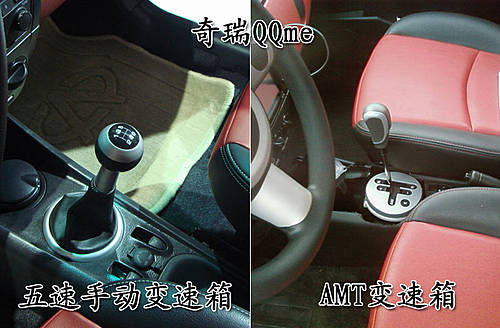 奇瑞QQme AMT車型的主要變化,是采用的奇瑞公司自主研發(fā)的手自一體五檔變速器,是配備了有電子液壓控制單元的機(jī)械變速箱,讓駕駛員不需要控制離合器踏板和進(jìn)行傳統(tǒng)的手動(dòng)換檔控制。該自動(dòng)變速箱有三種操作模式:手動(dòng)換檔;自動(dòng)經(jīng)濟(jì)換檔和自動(dòng)普通換檔。