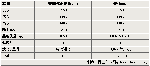 從基本參數(shù)來看,純電動版QQ3與普通版QQ3相比,車身尺寸沒有變化,不過在車重上增加了不少,這可以看出電動模塊還是比較重的,當(dāng)然比較特別的電動QQ3絕對零排放,不過對于電動模塊的參數(shù)暫時(shí)還沒有,有待進(jìn)一步的消息發(fā)布。