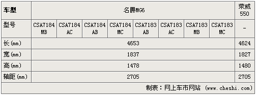 從參數(shù)上來看,名爵MG6與榮威550的軸距是一樣的,畢竟出自一個平臺都為2705mm,不過MG6雖為掀背車在車長方面卻比550要長一些,也比550略寬10mm,但車高差一點點。據(jù)了解,名爵MG6將推出了8個型號的車型,預(yù)計將有1.8L和1.8T兩個排量車型。