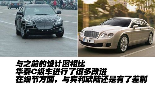 與之前曝光的華泰B級(jí)車(chē)設(shè)計(jì)草圖相比,這款新車(chē)的實(shí)車(chē)確實(shí)有了很多改變,除了前臉仍與賓利非常相似以外,車(chē)身的很多細(xì)節(jié)部分的設(shè)計(jì)都有了全新的變化。如果說(shuō)吉利卓越GE與勞斯勞斯幻影的相似度能達(dá)到80%,那么華泰的B級(jí)車(chē)山寨賓利歐陸飛馳則顯得小巫見(jiàn)大巫了。