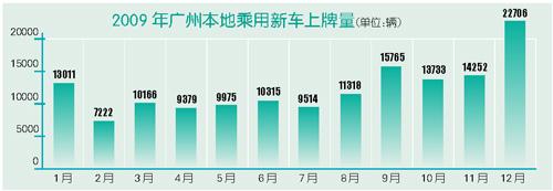 數(shù)據(jù)顯示,去年12月份廣州單月新車上牌量為22706輛,同比增幅達(dá)到全年銷量的最高點,日均上牌乘用車新車732輛。2009年最后一個月車市的火爆為廣州2009年全年乘用新車上牌量畫上了圓滿的句號,同時也帶動了廣東省新車銷量創(chuàng)下“新高”——當(dāng)月以96352輛的成績創(chuàng)造了全年單月乘用新車上牌量的新紀(jì)錄。據(jù)悉,深圳、東莞、佛山等地的全年銷量最高點均出現(xiàn)在12月份。