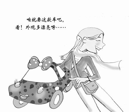 “大多數(shù)女性購車者購車僅憑著自己的第一印象,對車子外形要求往往特別挑剔,第一眼相不中的車型,無論性能如何好、別人如何推薦,一般都不再考慮,因此,一些外形特別引人注目的車型往往比較討巧。”北京現(xiàn)代某4S店銷售人員告訴記者,女性購車與男性明顯的不同就是過于感性。“外觀是女性買車時最關(guān)注的問題。女性顧客選車時,在一定價位內(nèi)的車型中,往往先看對外形和顏色是否滿意,然后再了解車的其他性能!