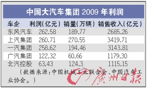 進入4月底,全球各大汽車企業(yè)2009財年(2009年4月1至2010年3月31日)財報相繼發(fā)布,與此同時,中國機械工業(yè)聯(lián)合會、中國汽車工業(yè)協(xié)會聯(lián)合發(fā)布的“2009年度中國機械工業(yè)百強企業(yè)、汽車工業(yè)三十強企業(yè)”的統(tǒng)計數(shù)據(jù)顯示,2009年汽車工業(yè)共有規(guī)模以上企業(yè)13758家,30強企業(yè)在企業(yè)總數(shù)中只占0.22%,主營業(yè)務收入?yún)s占62.98%,實現(xiàn)利潤總額占60.72%。其中東風汽車、上汽集團和一汽集團2009年實現(xiàn)的利潤為260億元左右,廣汽集團和北汽控股緊隨其后,廣汽的盈利超過100億元人民幣,大車企的吸金能力讓人瞠目。
