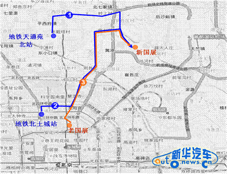 2010北京車展1、2、3號(hào)線專線行駛路線圖