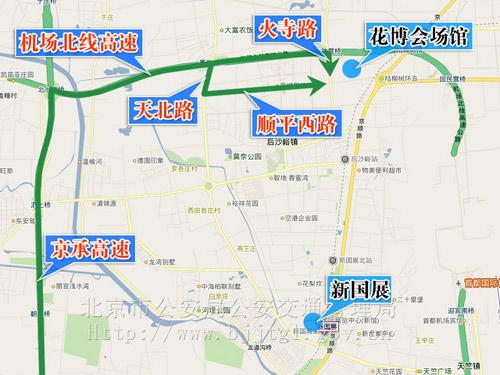 (一)由京承高速路經(jīng)機(jī)場北線高速路、火寺路出口、火寺路;或由機(jī)場北線高速路天北路出口經(jīng)天北路、順平西路至花博會(huì)場館自駕車停車場。
