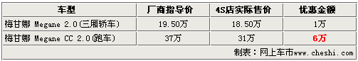 與雪鐵龍、標(biāo)致同為法系知名汽車制造商的雷諾,以進(jìn)口方式引進(jìn)國內(nèi)的車型有風(fēng)景、梅甘娜以及拉古娜等多款車型。其中梅甘娜車型分為三廂版本和跑車兩個版本。近日根據(jù)網(wǎng)上車市價格檢測系統(tǒng)顯示,梅甘娜全系車型均出現(xiàn)了價格松動,三廂普通版車型可優(yōu)惠1萬元,而跑車版梅甘娜的優(yōu)惠幅度達(dá)到6萬具體車型售價見下表: