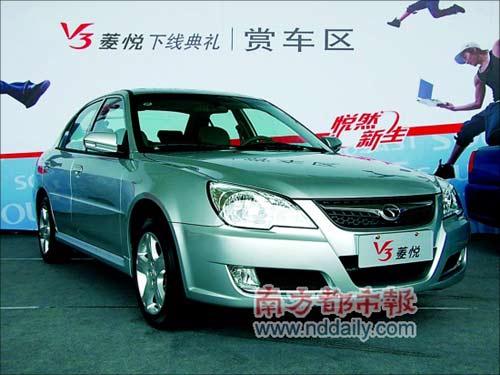 8月28日,東南汽車首款自主研發(fā)新車V3菱悅在福州正式下線,標志著東南自主品牌戰(zhàn)略進入實施階段。記者獲悉,V3菱悅將于10月初全面上市。業(yè)界普遍預(yù)期其售價區(qū)間為6萬-9萬元。競爭對手為比亞迪F3、奇瑞新旗云等。